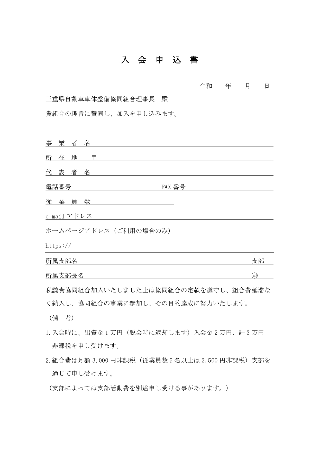 入会手続き 書面に必要事項記載後FAXにて受付を致します。